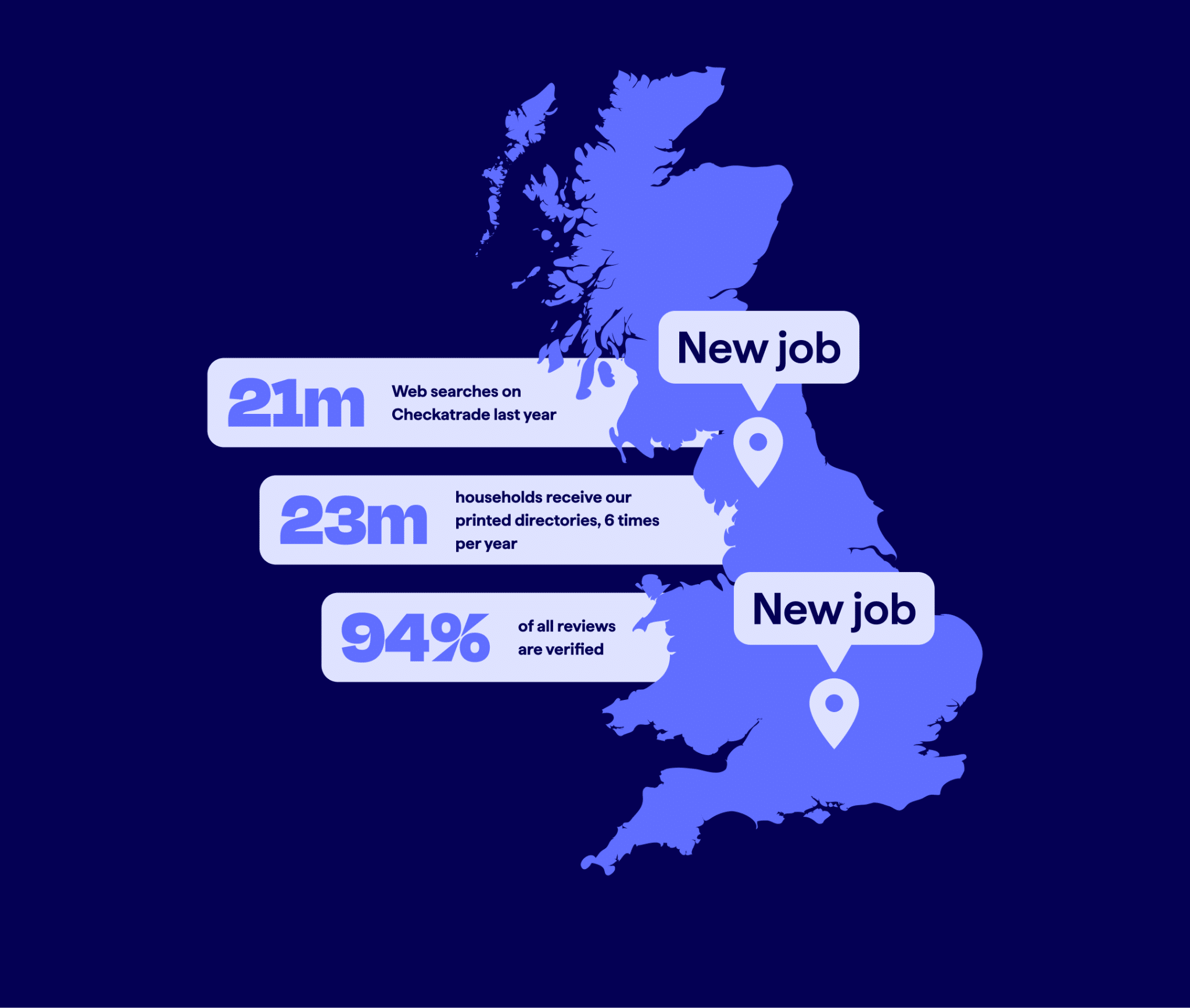 There were over 21 million searches on Checkatrade last year for tradespeople like you. Plus, 23 million households received our printed directories.